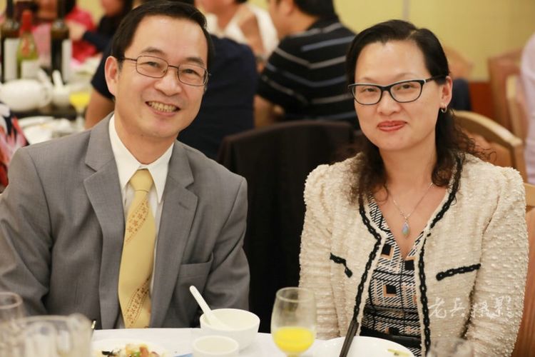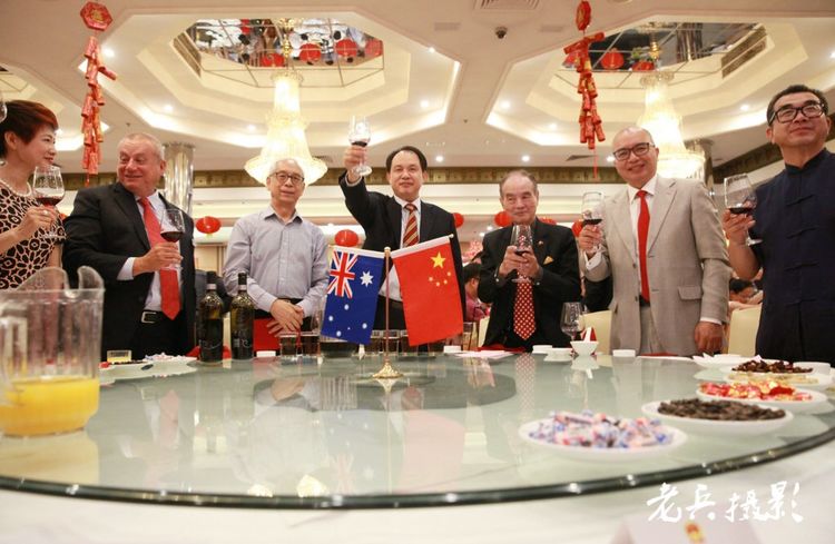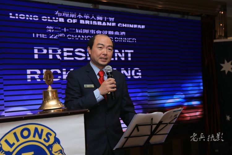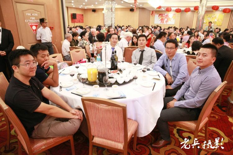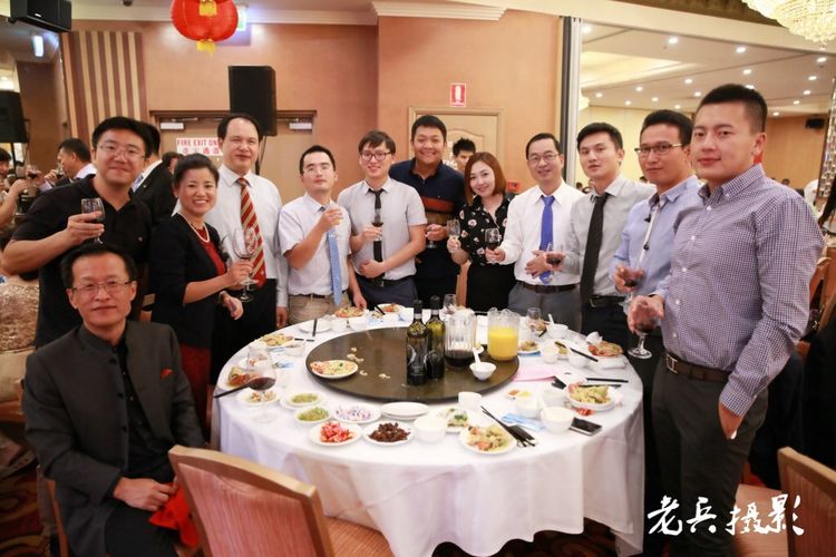 昆士兰同乡会会长周应权(下左2)应邀为邓孟安选手打气。